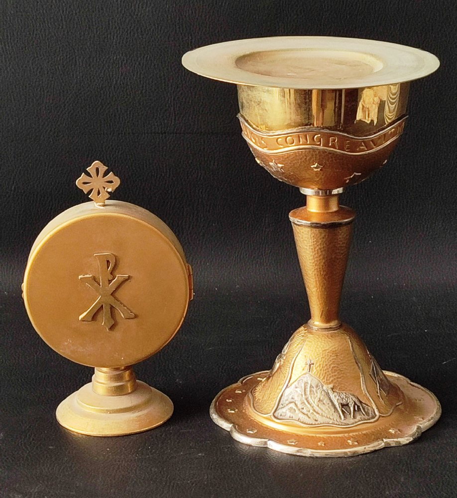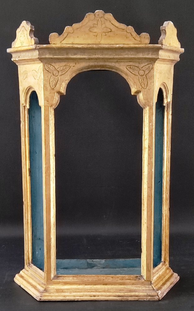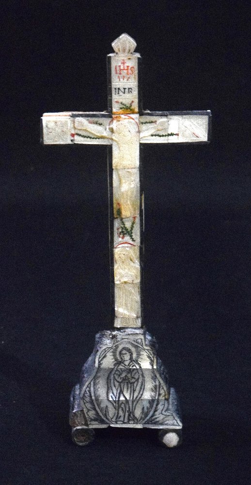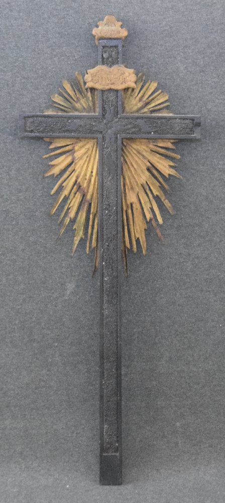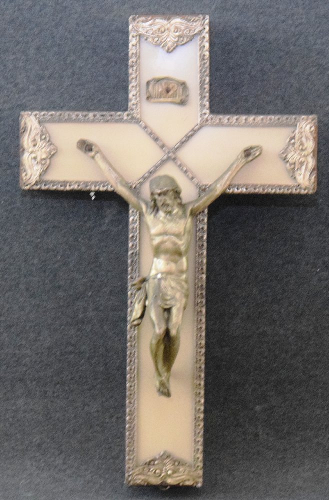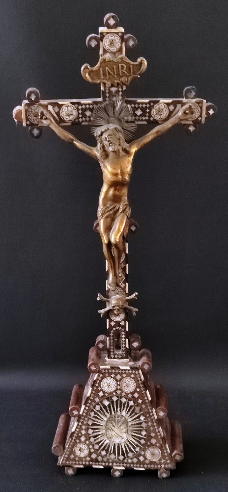 19th C. Mother of pearl inlay cross with gilt metal corps 50cms