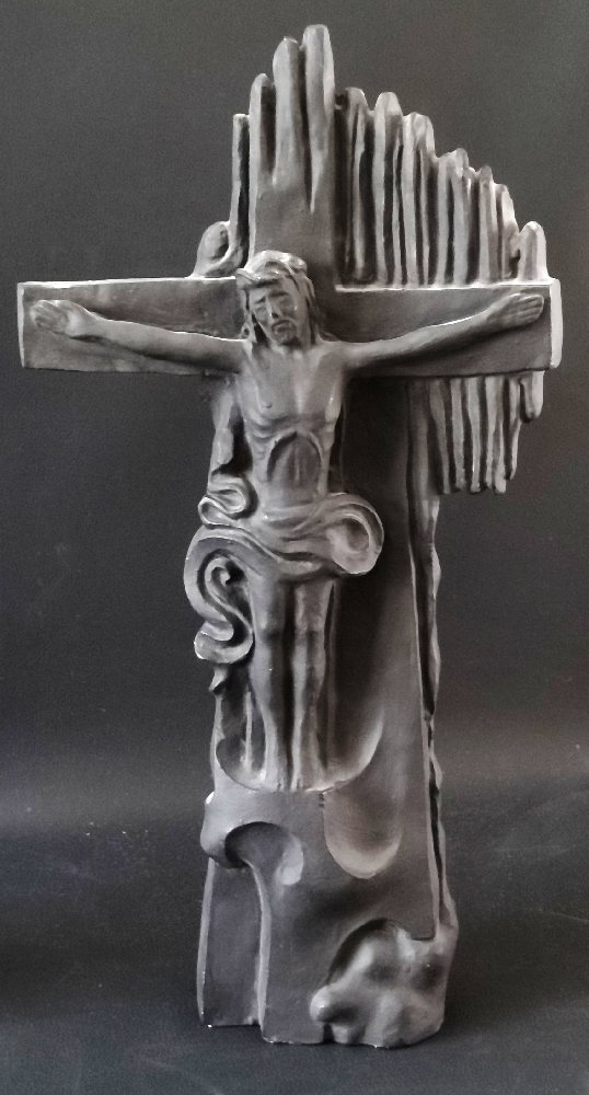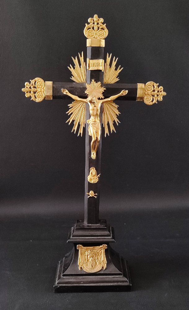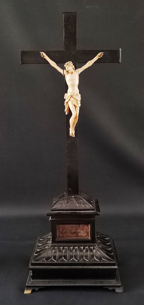 19th C. ebony cross with bronze corpus and terminals, 49cms