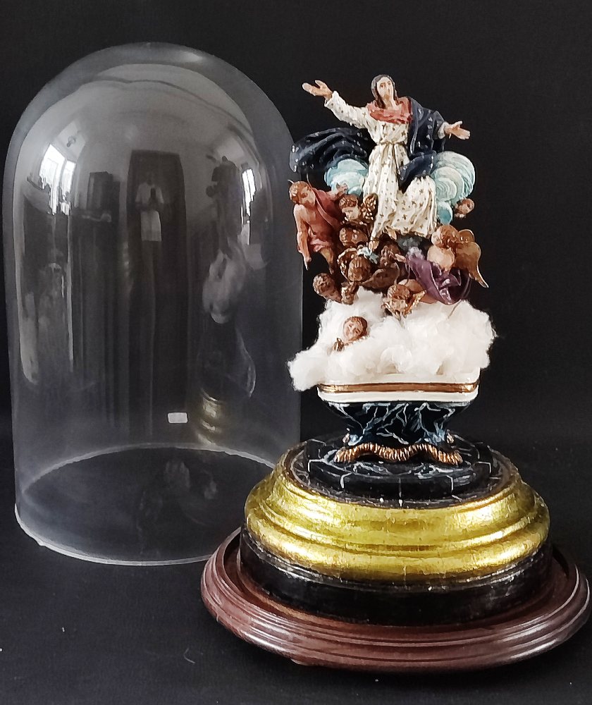 Assumption of the Virgin Mary figure 37cms, under glass dome
