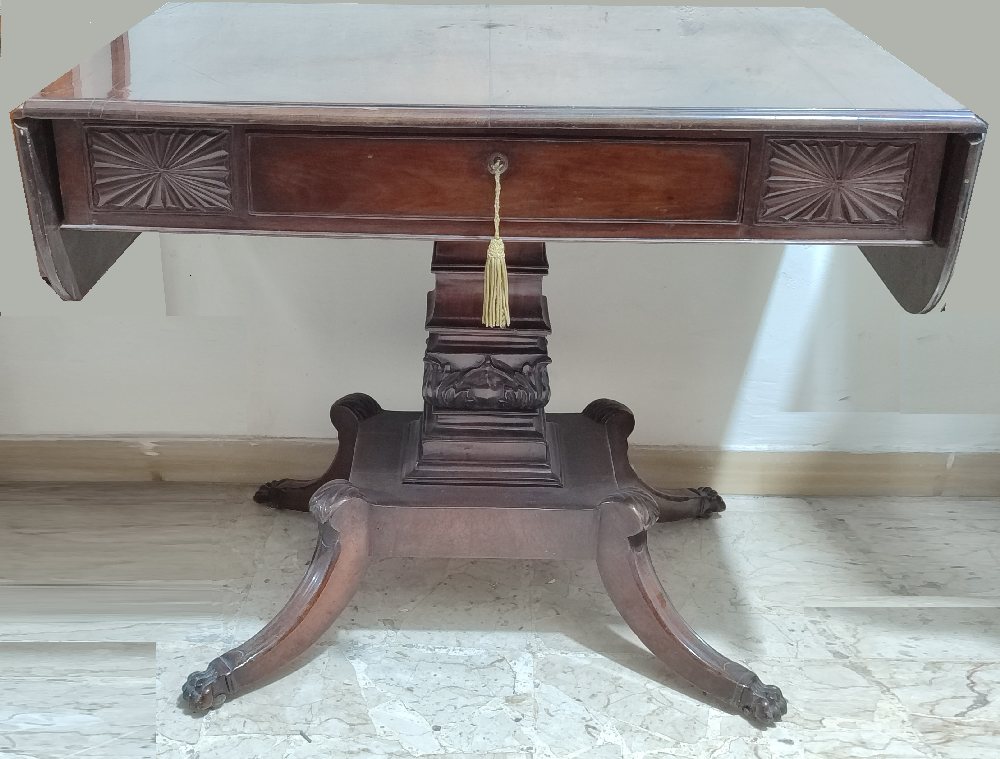 19th C. Mahogany sofa table on square column and 4 splay legs