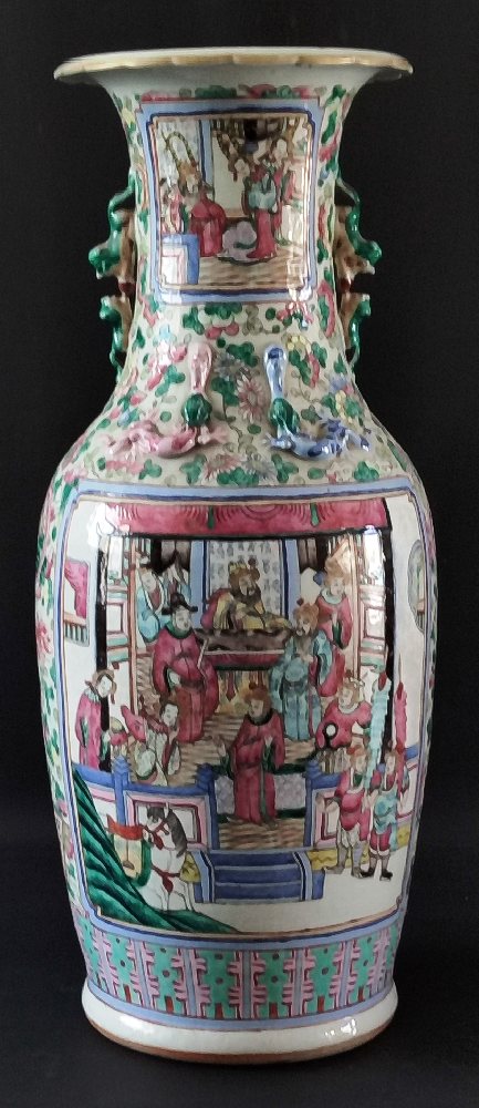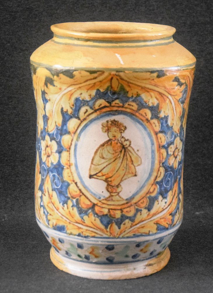 18/19th C. Majolica jar depicting bust in medallion, and floral decoration, 28cms