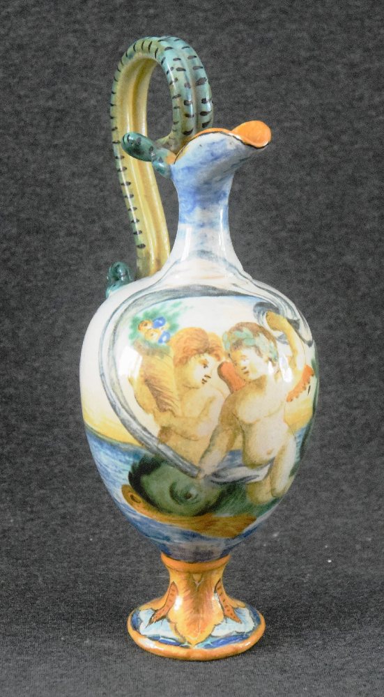 Neapolitan ceramic pitcher with handle, depicting cherubs, 25cms