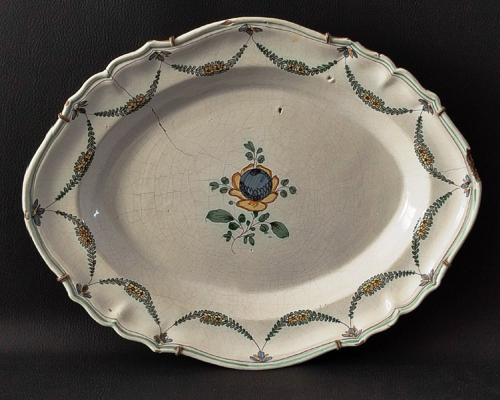 18th C. Italian Ceretto majolica round dish with birds, flowers and fruit, 34cms (d)