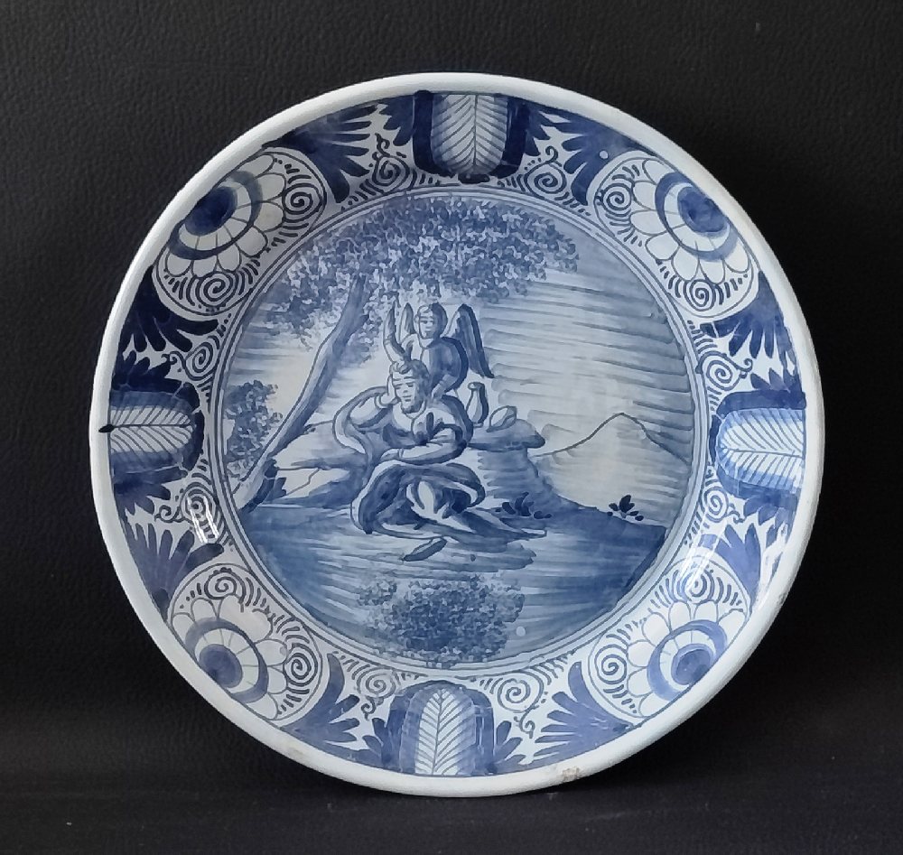 Mid 19th C. Italian majolica round dish depicting Warrior and cherub, 40cms