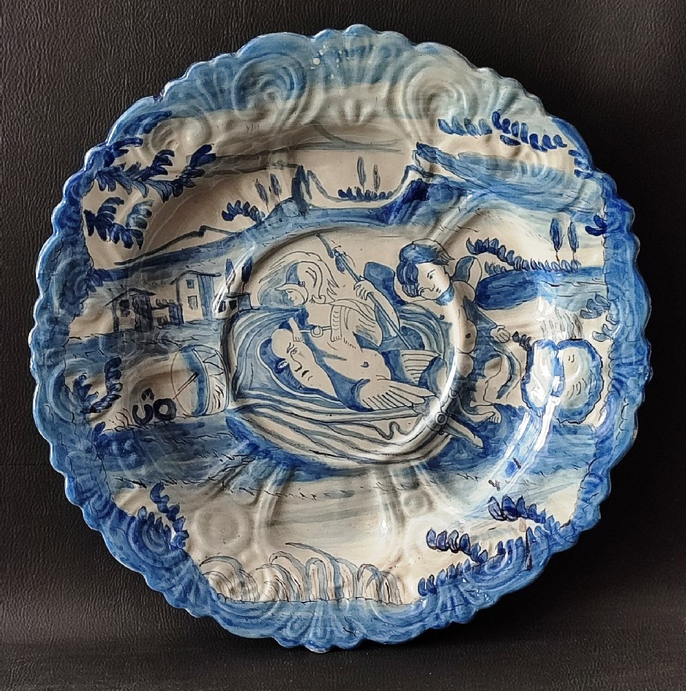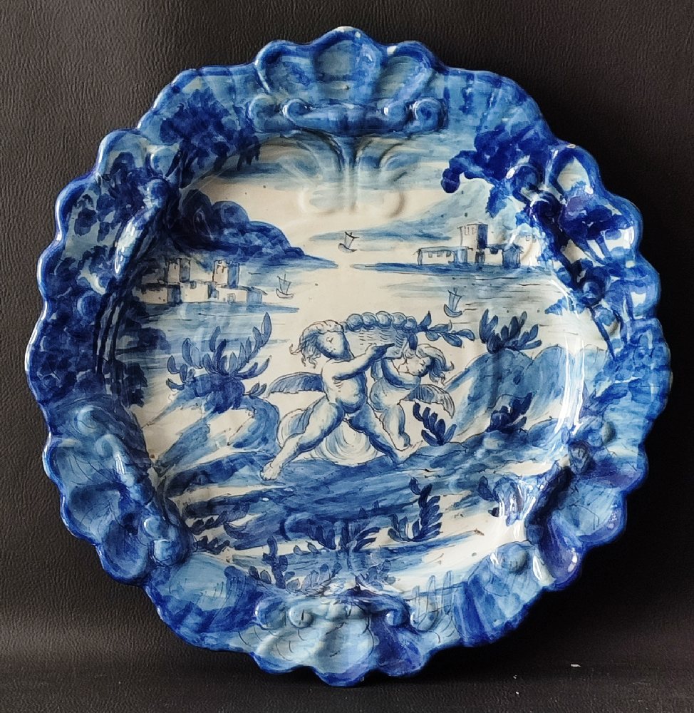Mid 19th C. Italian majolica round dish depicting cherubs and seascape, 40cms