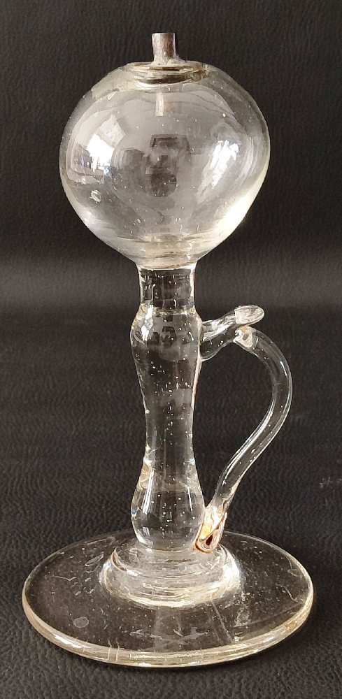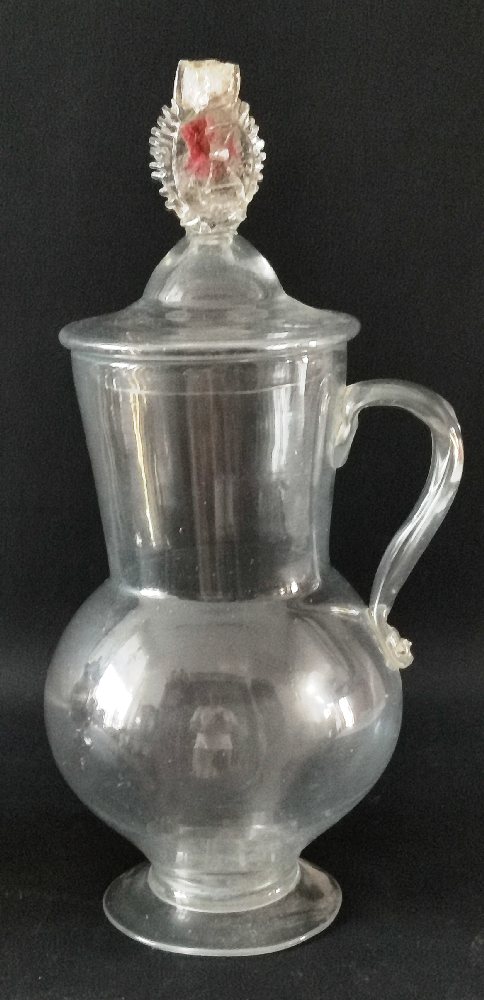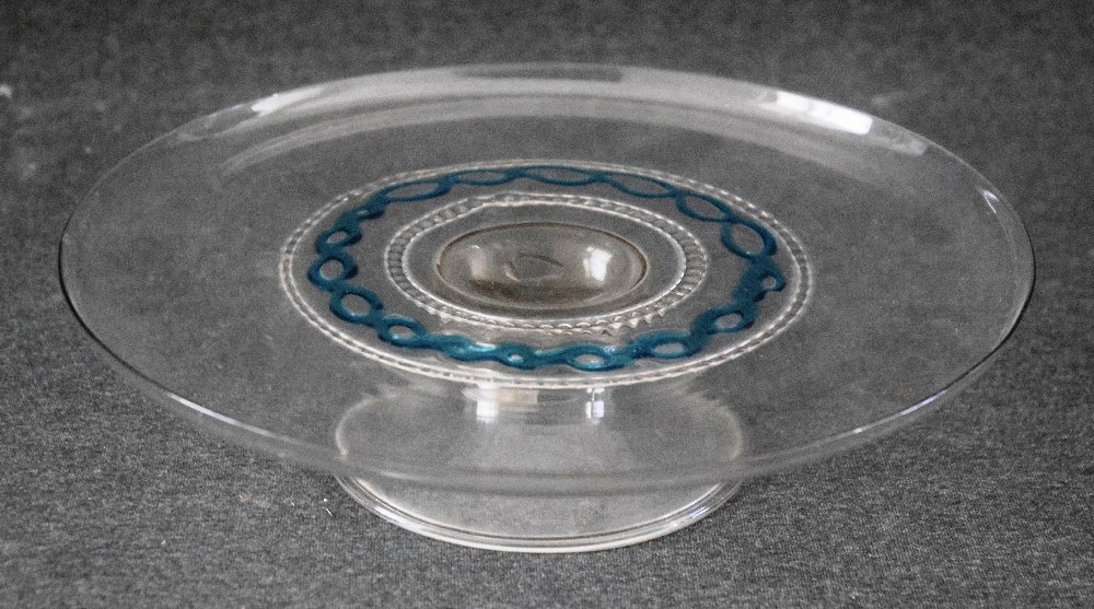 18th Venetian glass tazza on flared conical foot, with blue twirl decoration, 26cms