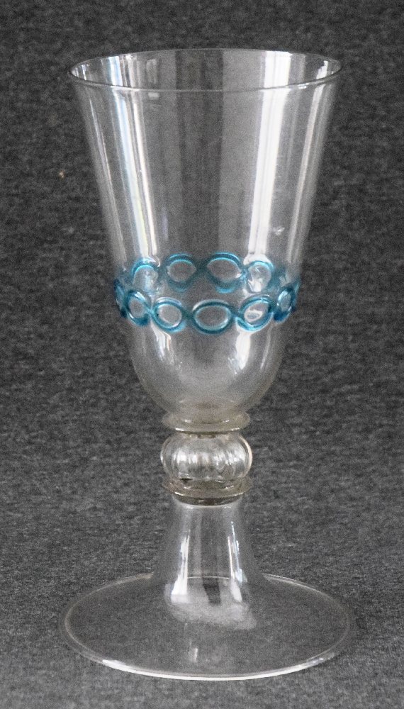 18th Venetian glass goblet with blue twirl decoration, 20cms