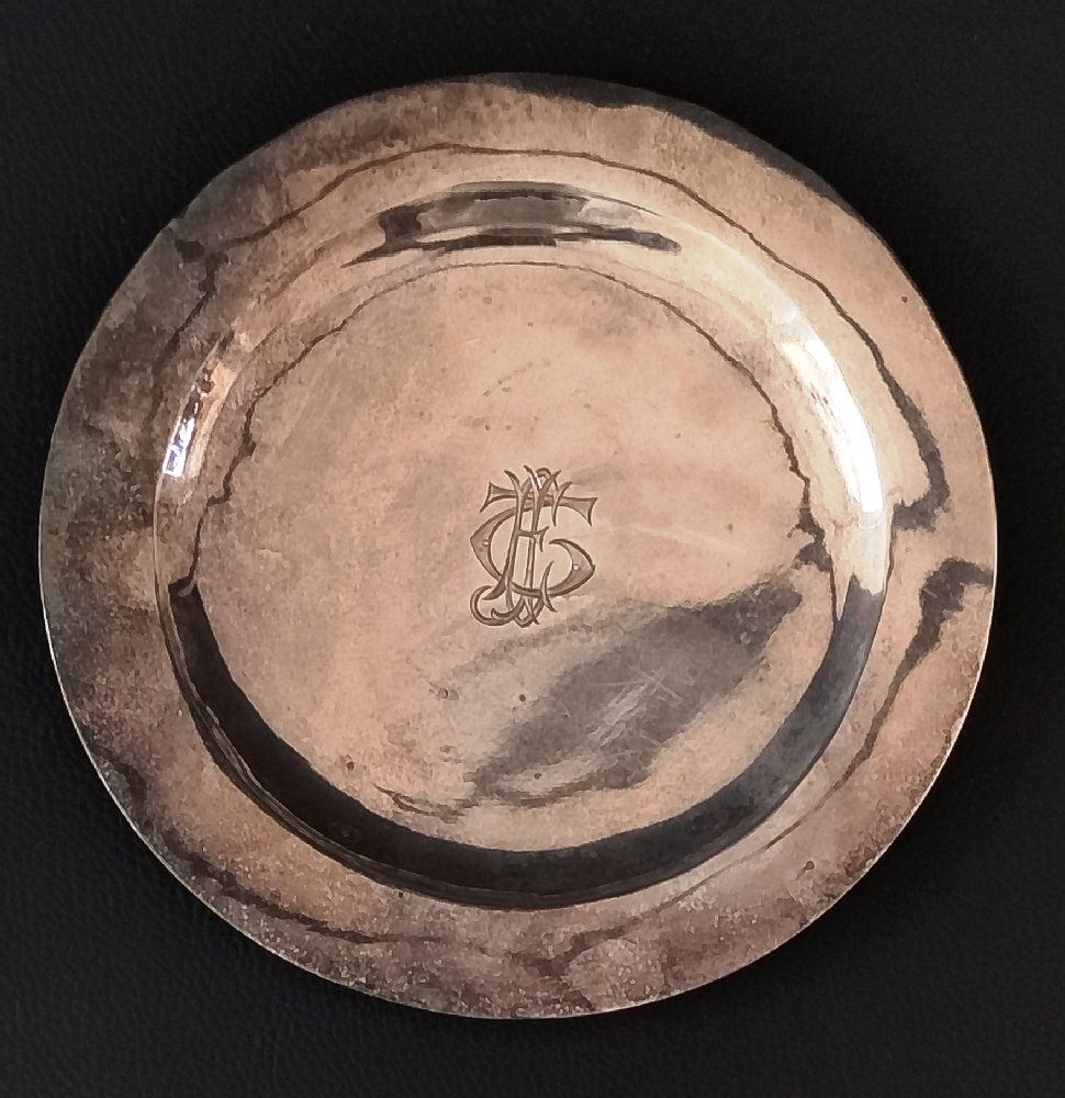 19th C. Maltese silver round tray with engraved initials, ca. 1857 18cms x 225grms