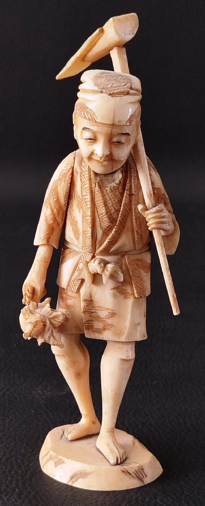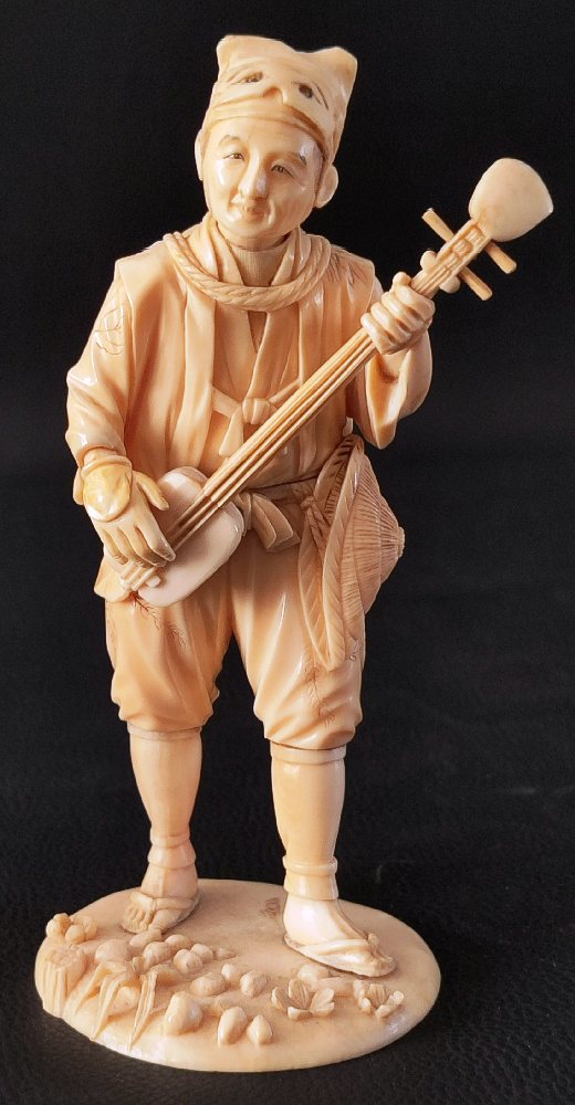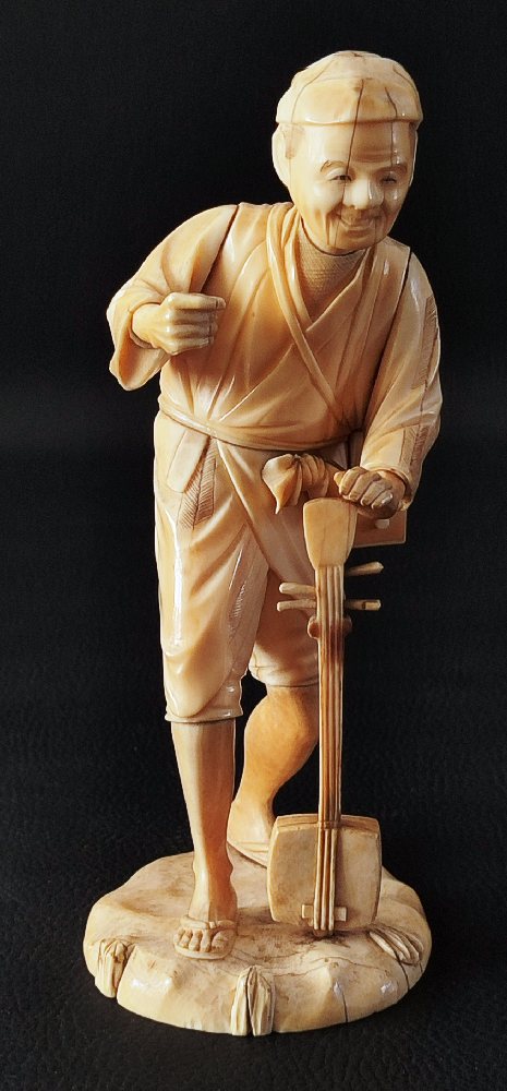 19th C. Japanese ivory figure of a musician with folded hat 18cms
