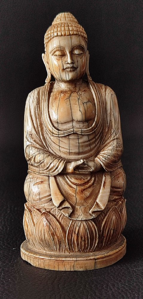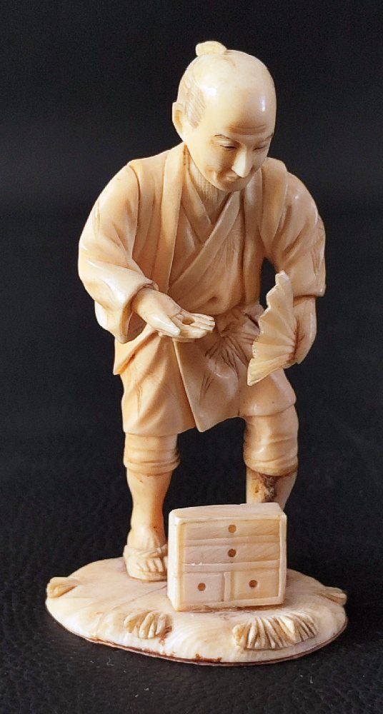 19th C. Japanese ivory figure of a man holding fan 10cms