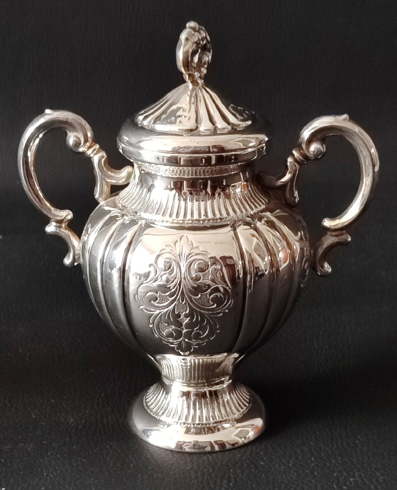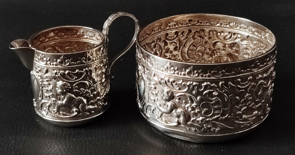 English silver cream jug and cylinder sugar bowl, embossed, 125grms
