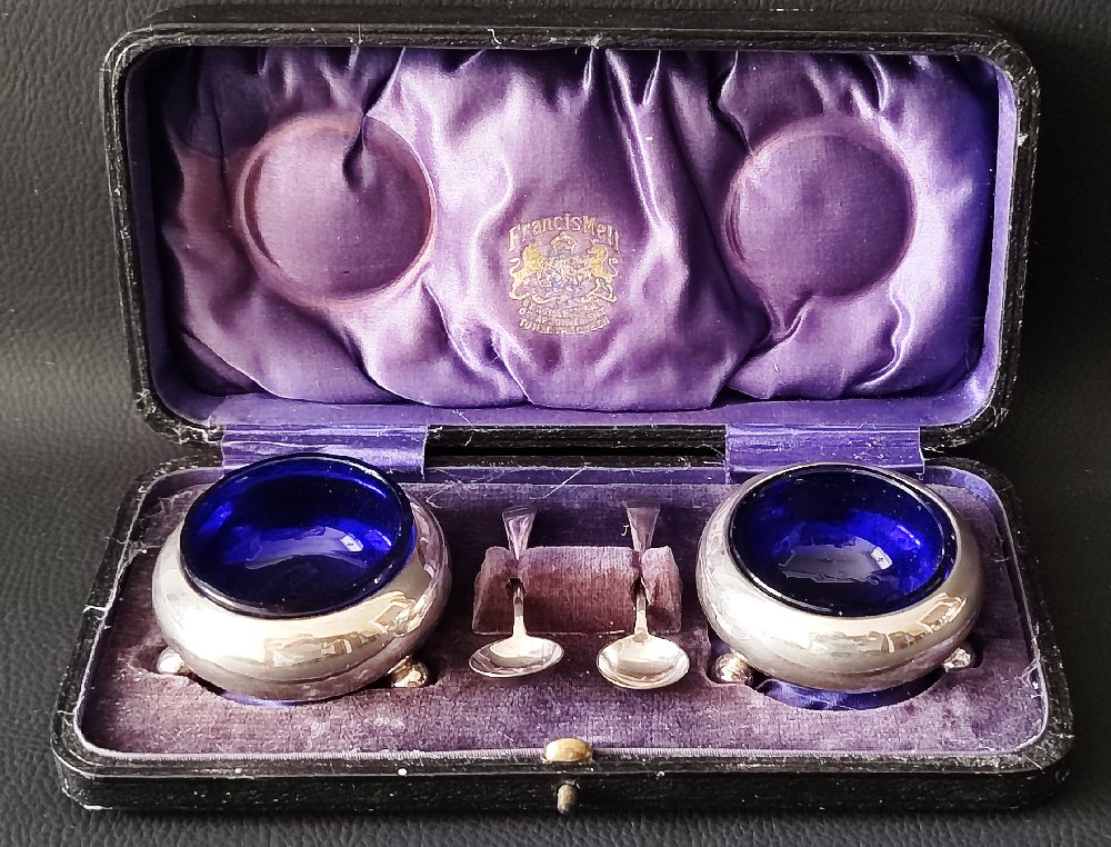 2, Silver salts and spoons, in presentation case, 80grms