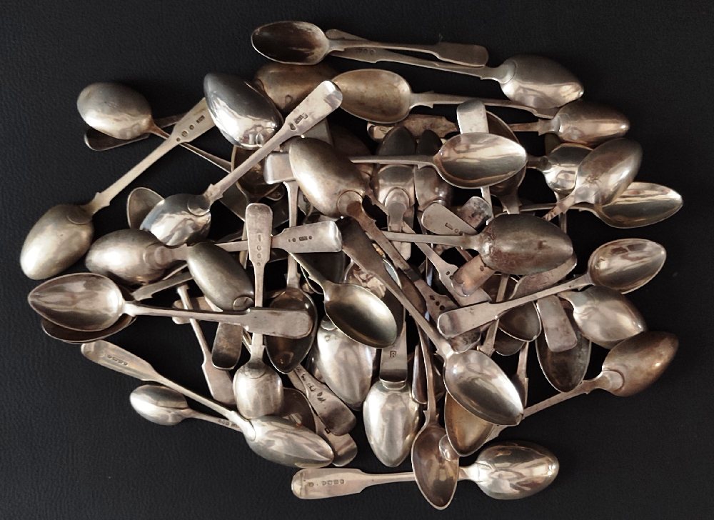 Silver assorted tea / coffee spoons, mainly 19th C. Maltese, 1200grms