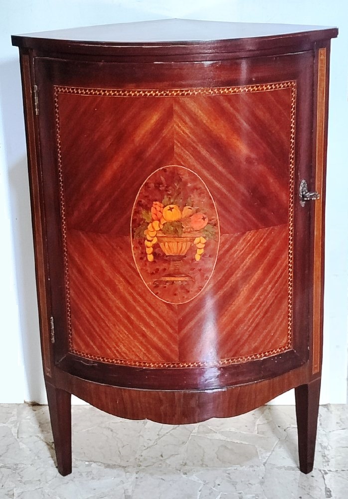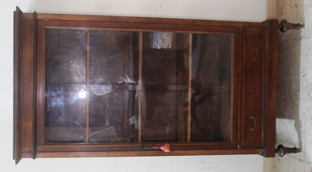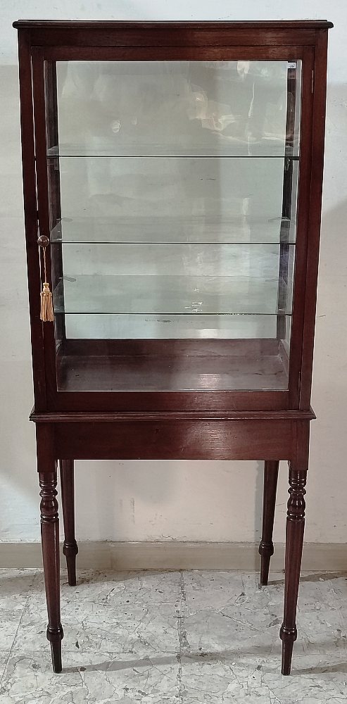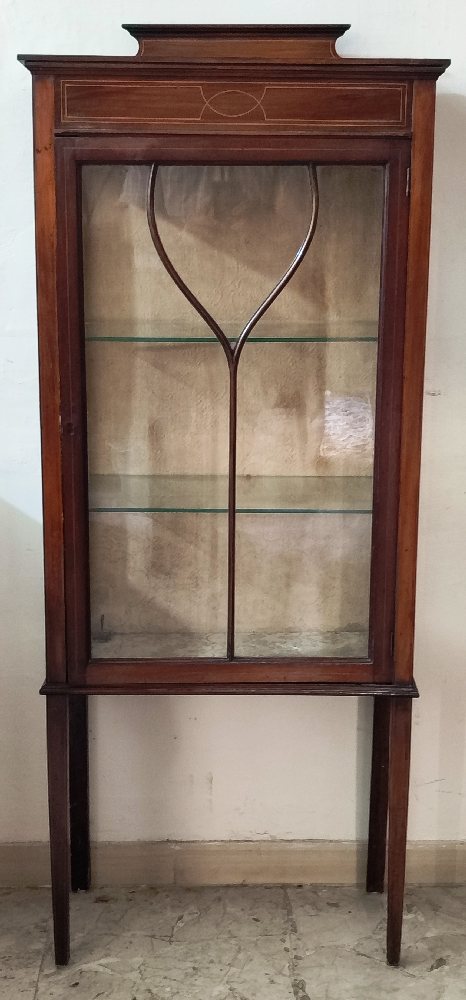 Edwardian mahogany tall showcase, inlaid, tall legs, 1 door