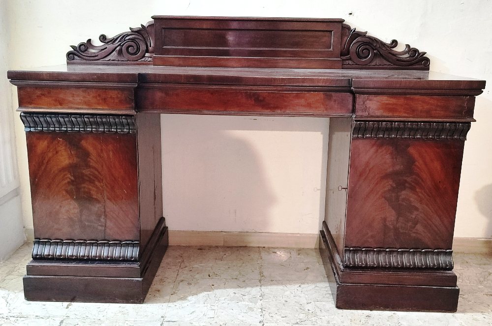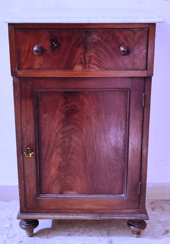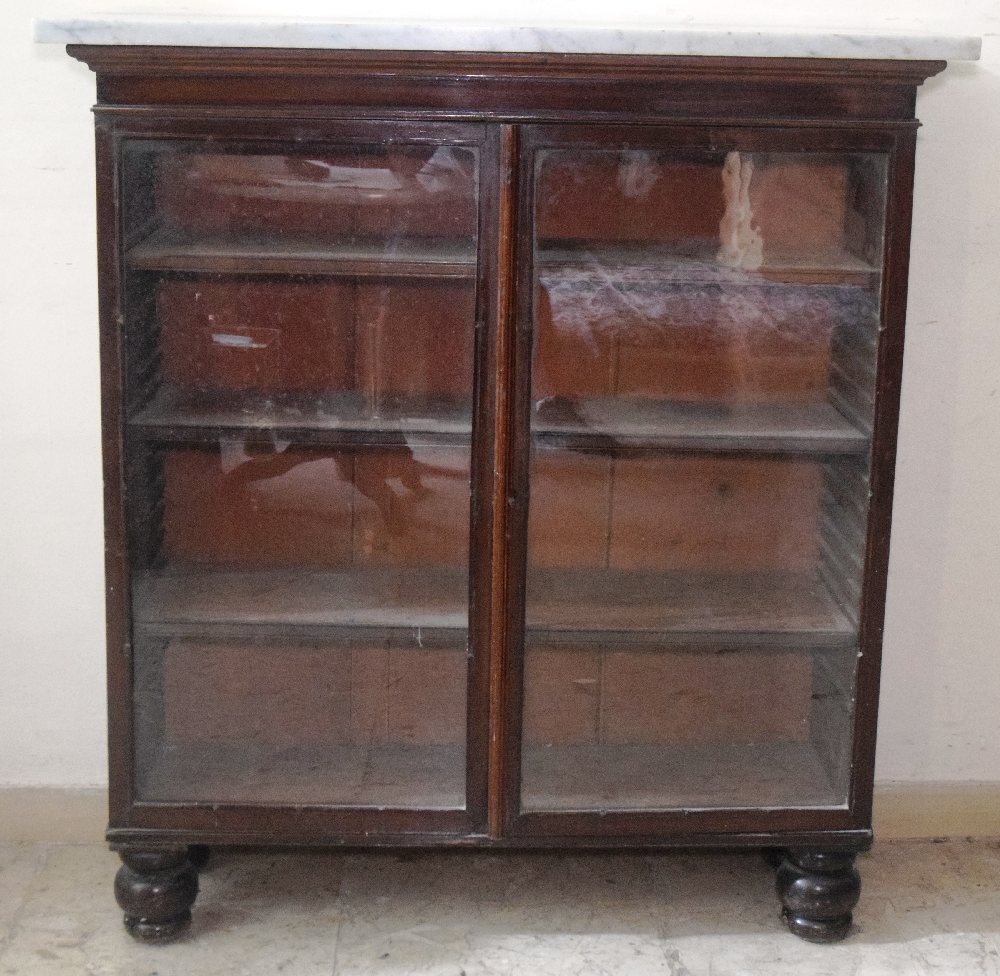 19th C. Maltese mahogany 2 door low bookcase, white marble top