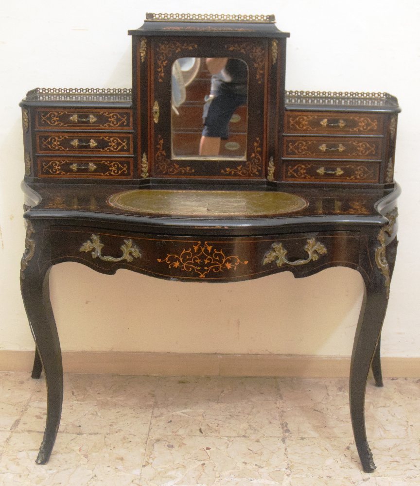 19th C. Ebonised ladies desk inlaid, and with Ormolu mounts
