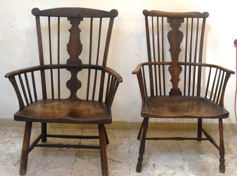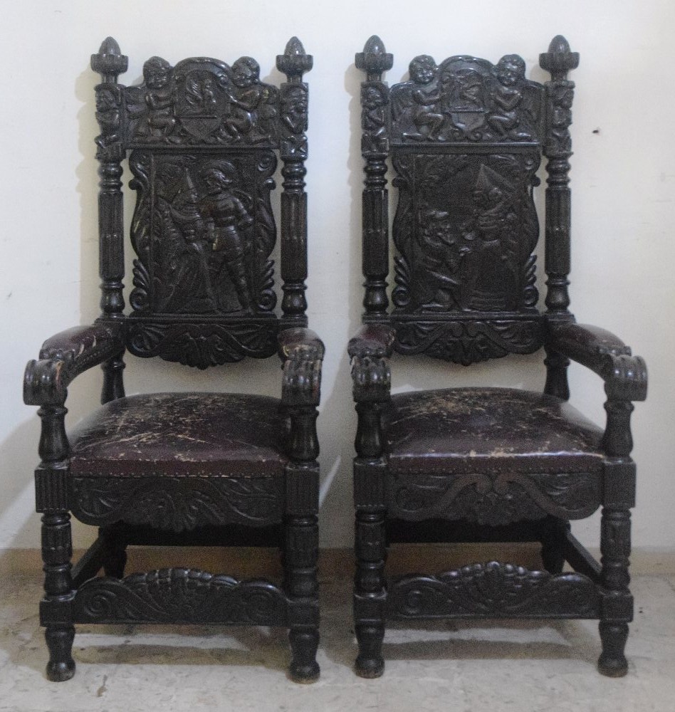 2, Mid 19th C. Renaissance revival par majestic armchairs in carved oak