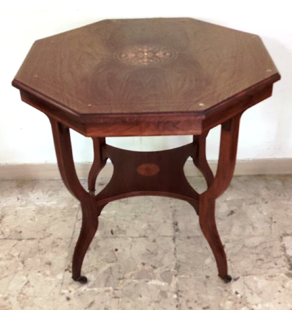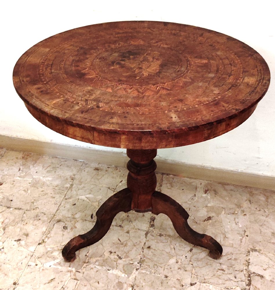late 19th C. Italian Sorrento inlaid round centre table on column and tripod legs