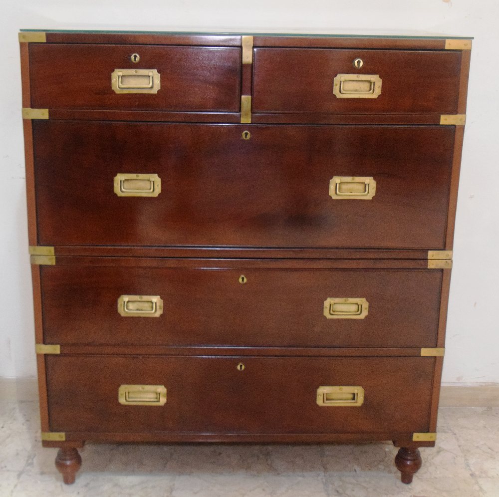 19th C. Mahogany military chest of 5 drawers with brass mounts and handles