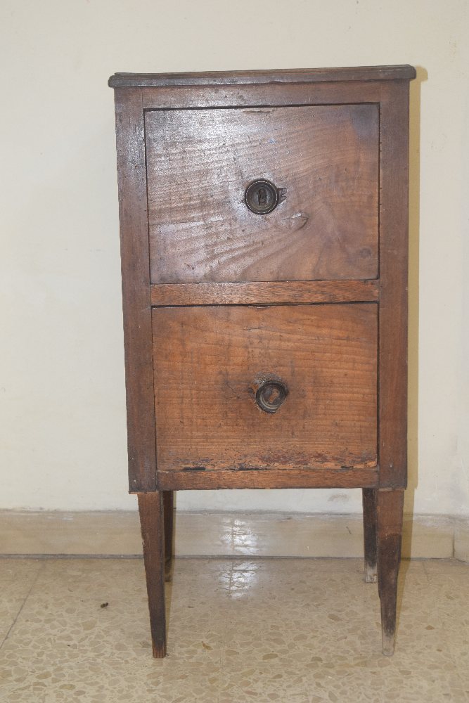 19th C. Italian walnut 1-door showcase with drawer, on turned legs