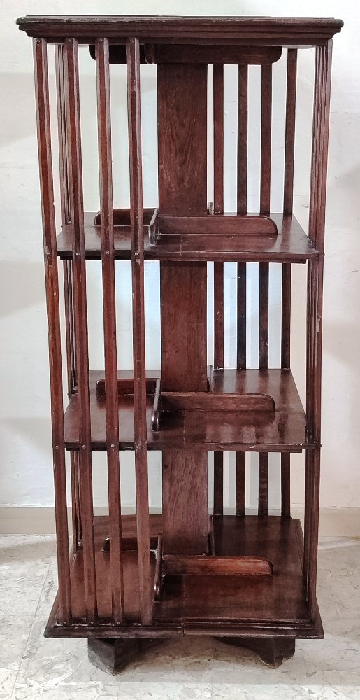 Early 20th C. Italian inlaid walnut 3-tier whatnot with bobbin columns and castors