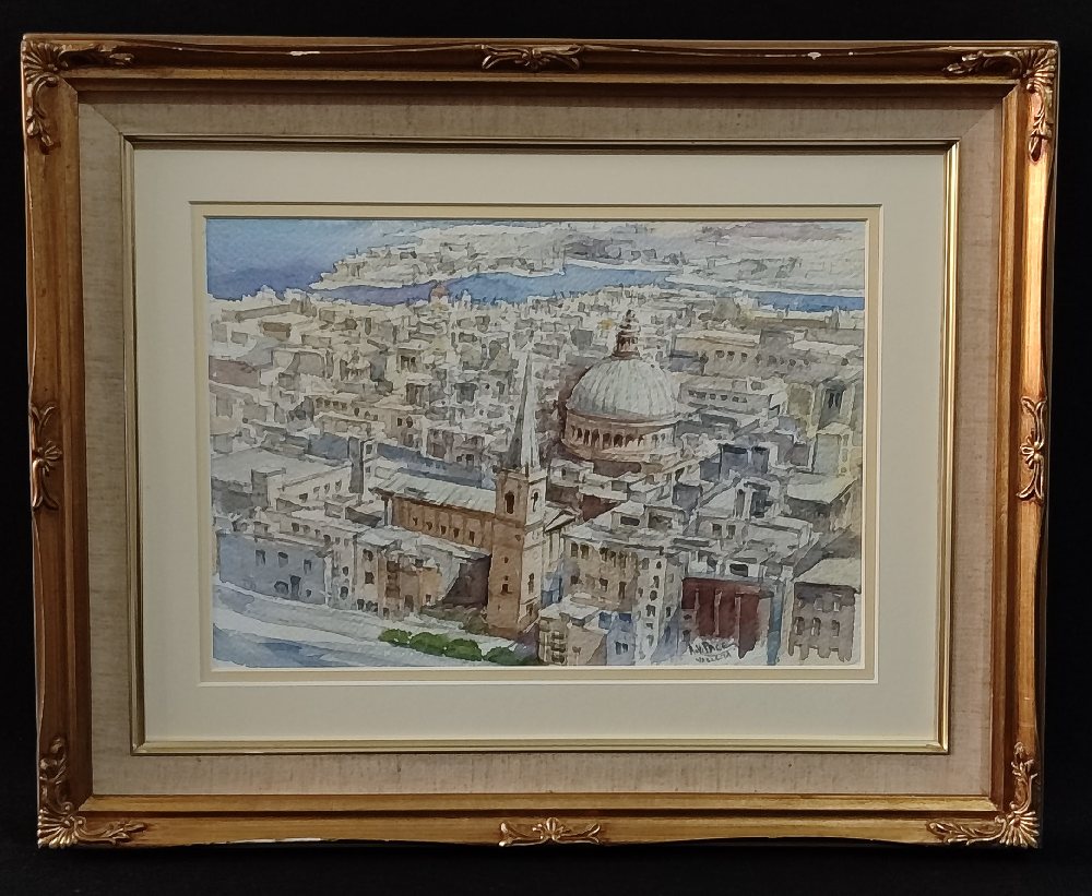 A.V. PACE, Water colour ‘Valletta – Birds eye view’ 32x22cms, ,signed, framed