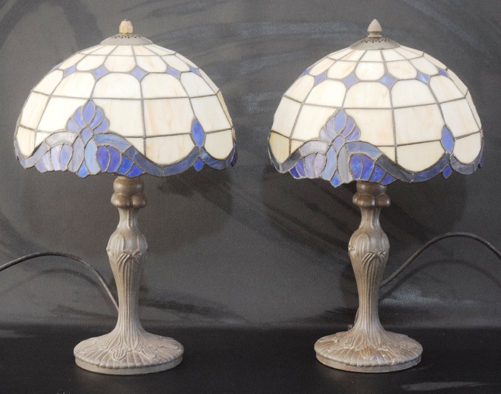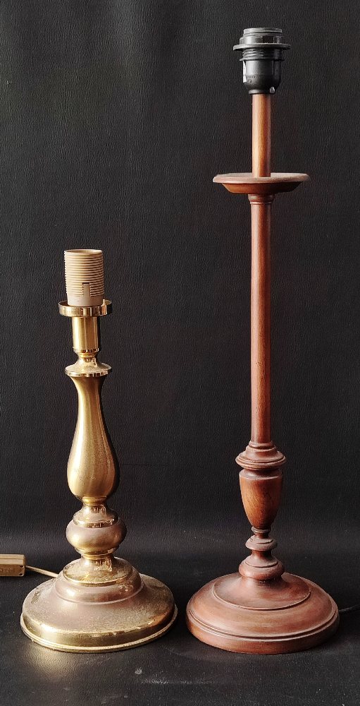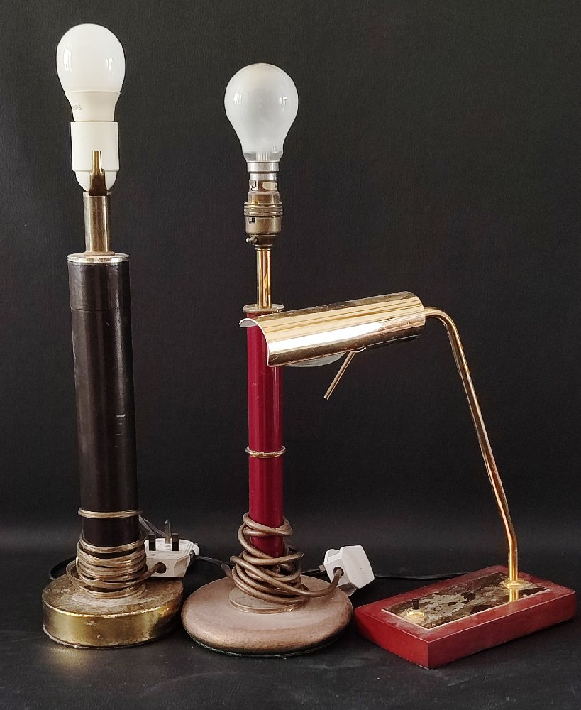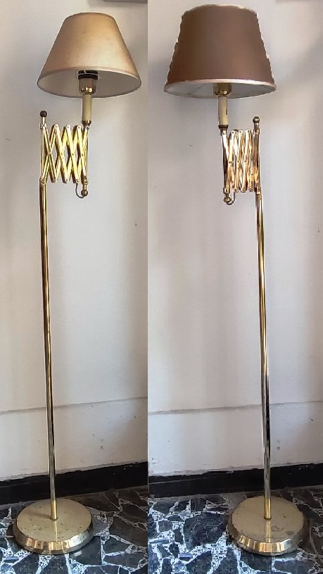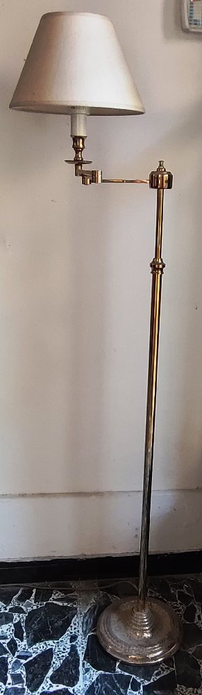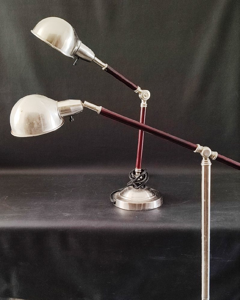White metal and mahogany adjustable floor lamp and matching desk lamp