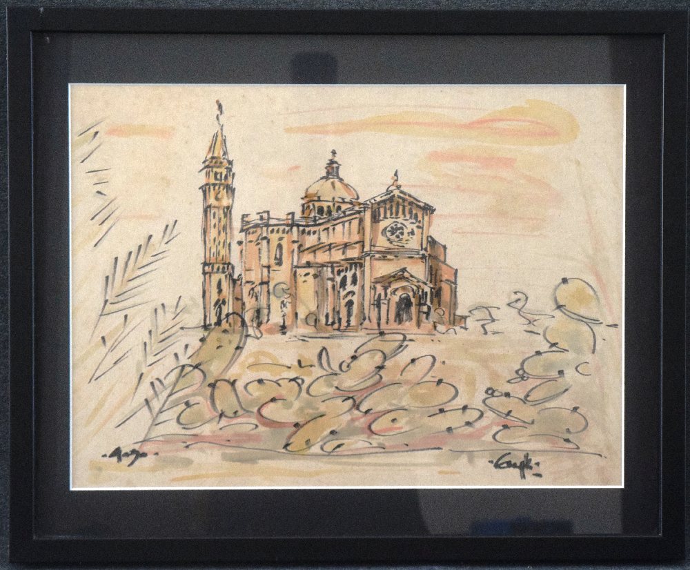 BALDASSERE BORG 2, pen drawings ‘Phoenicia Hotel & Scott’s Church Valletta’ 22x15cms, framed