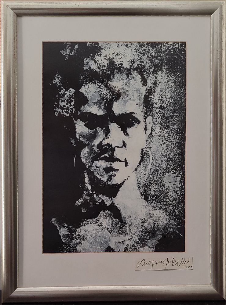 LUCIANO MICALLEF White oil on black board ‘African female portrait’ 32x47cms, signed, dated ’13, framed