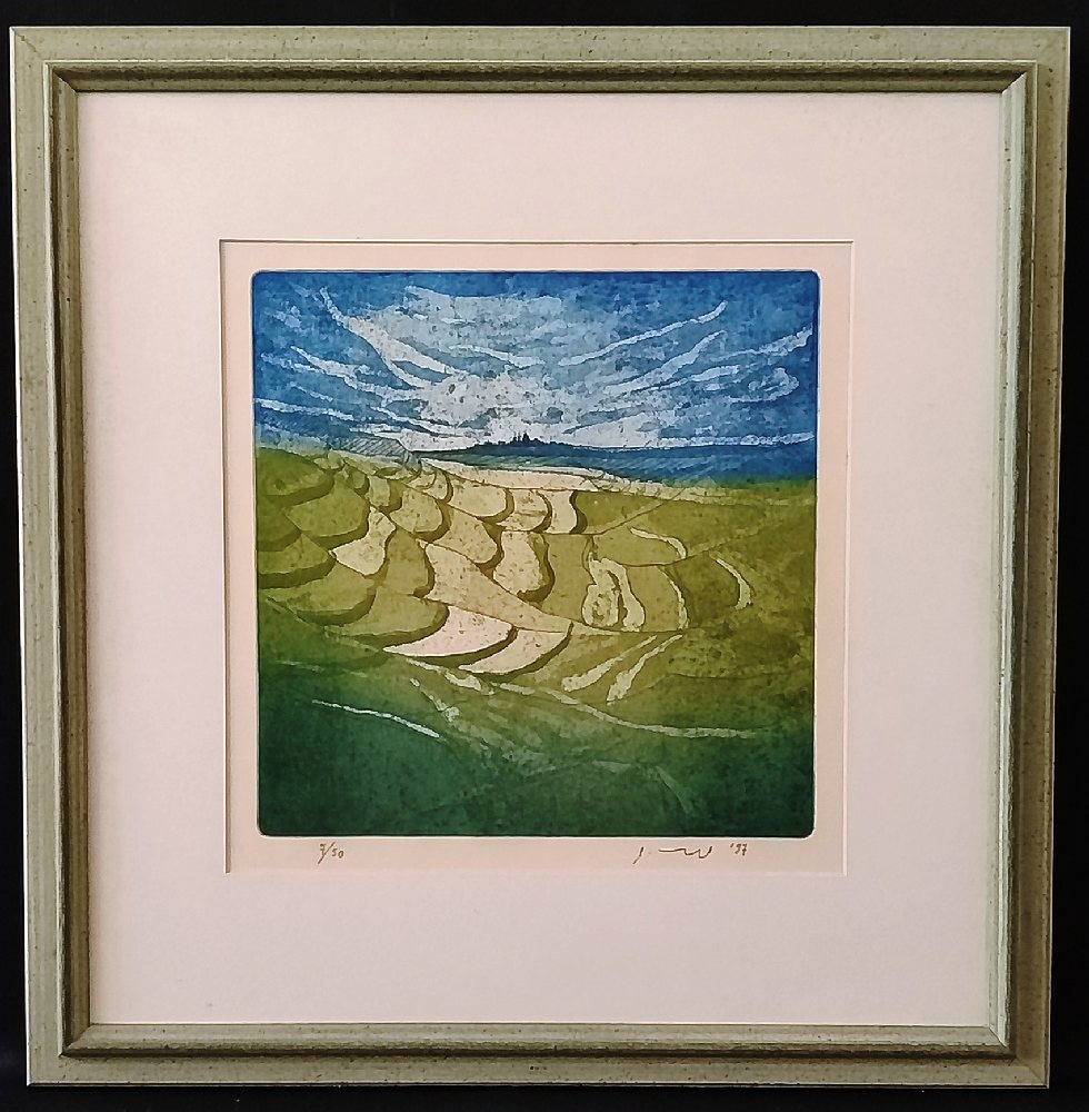 RICHARD SALIBA L/e 7/50 aquatint ‘Landscape’ 29x29cms, signed, dated ’79, framed