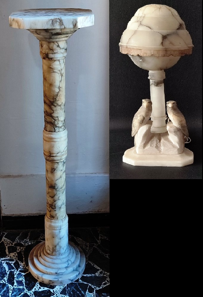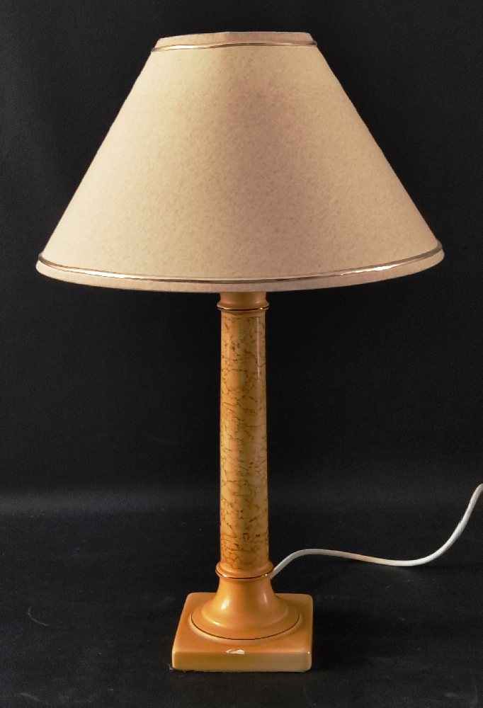 Italian ceramic Ionic column, 90cm, and shallow urn with gilted ring handles, 27cm