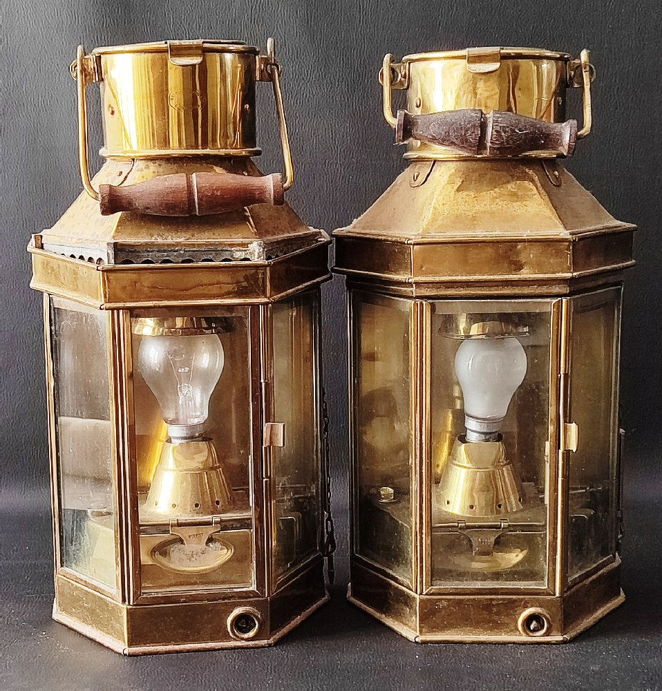 2 Marine lanterns with paraffin lamps, ca 1890, converted to electricity