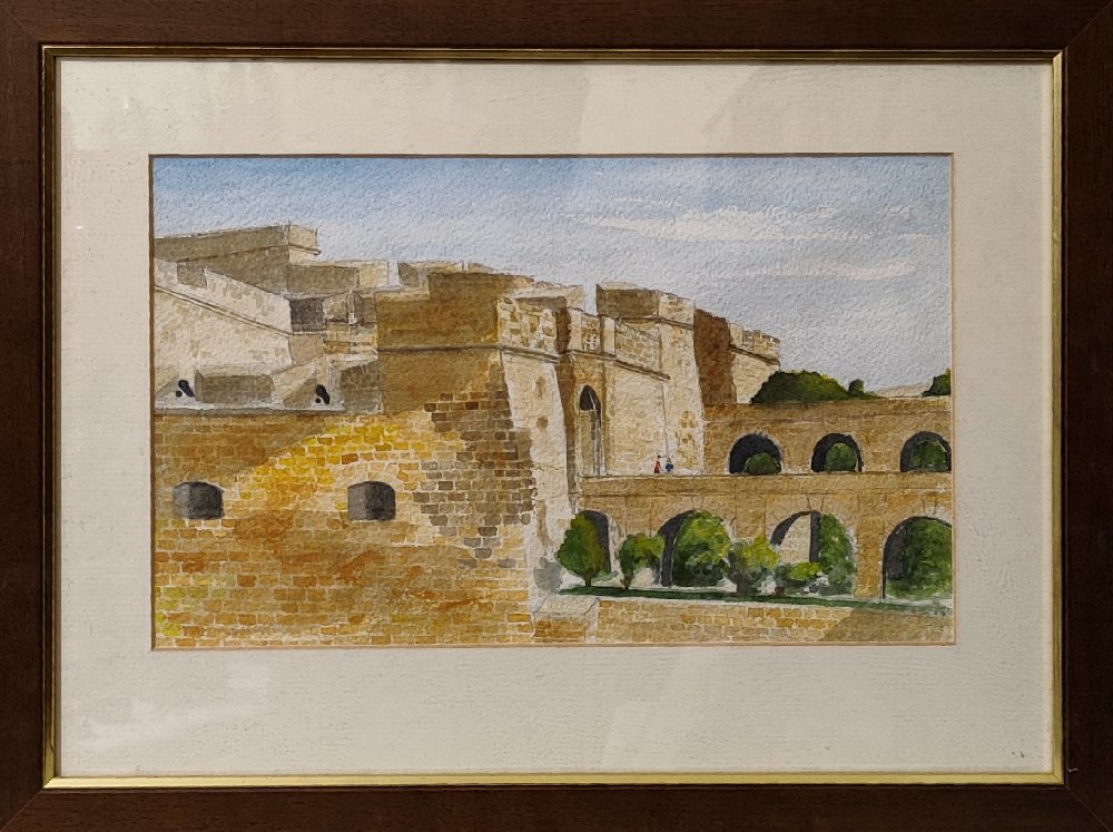 Water-colour: The Entrance to Cottonera, 37 x 22cm, framed