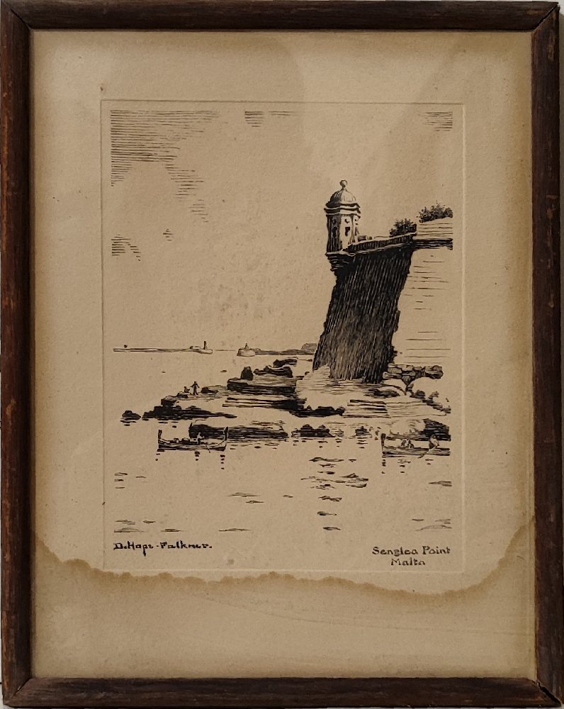 D HOPE FAULKNER pen drawing: Senglea Point, Malta, 16 x 20cm, framed