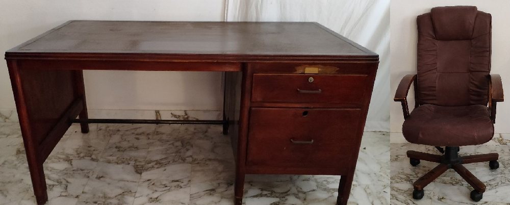 Maltese fruit wood and mahogany veneered bureau bookcase, swan neck pediment, slope front and 3 drawers, string inlay and bun feet, ca 1970, 102 x 218cm