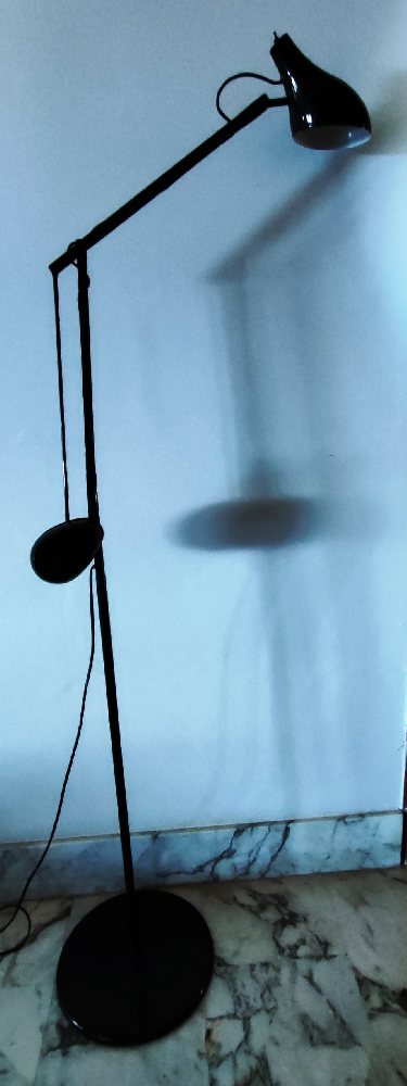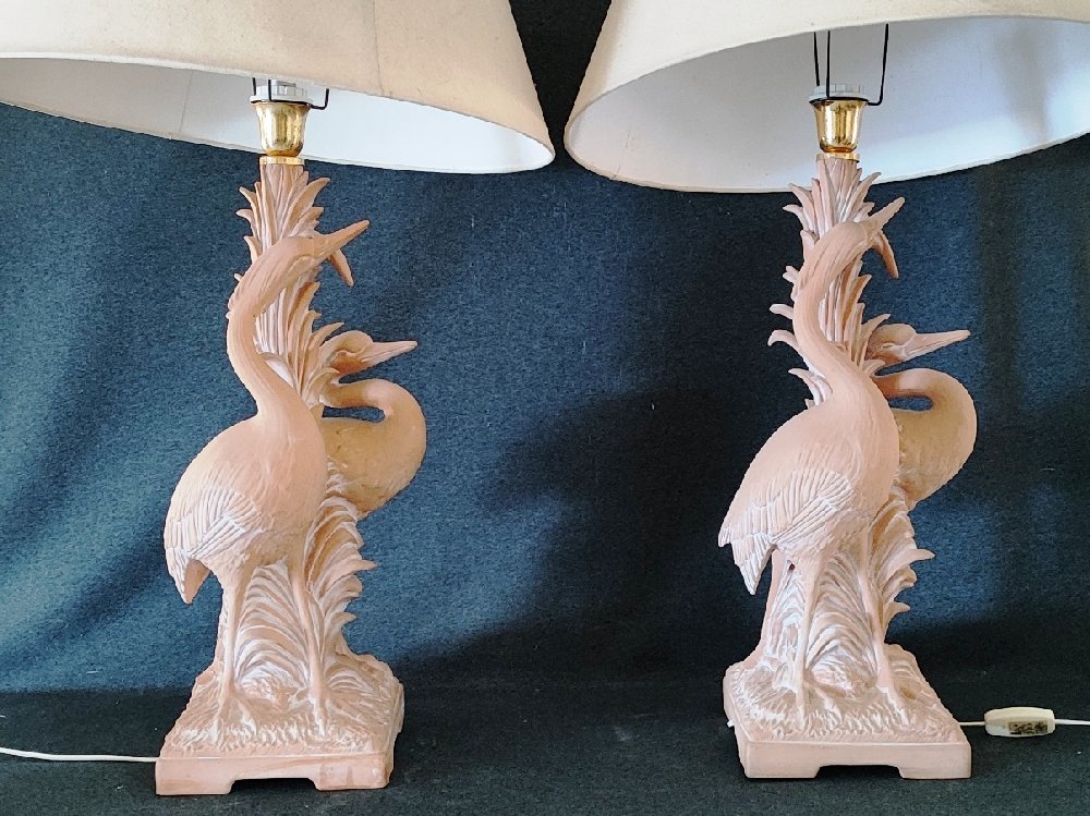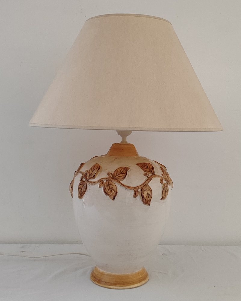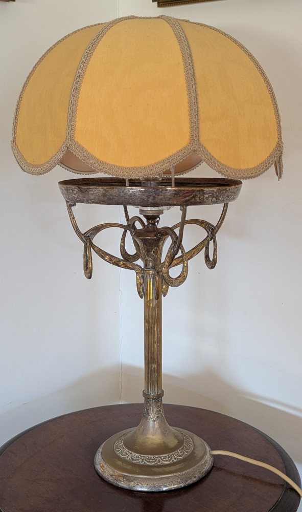 Polychrome painted ionic column table lamp with shade and metal table lamp with shade