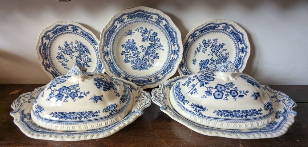 MASON’S Patent Ironstone dinner service, blue & white, Manchu pattern, 58 piece